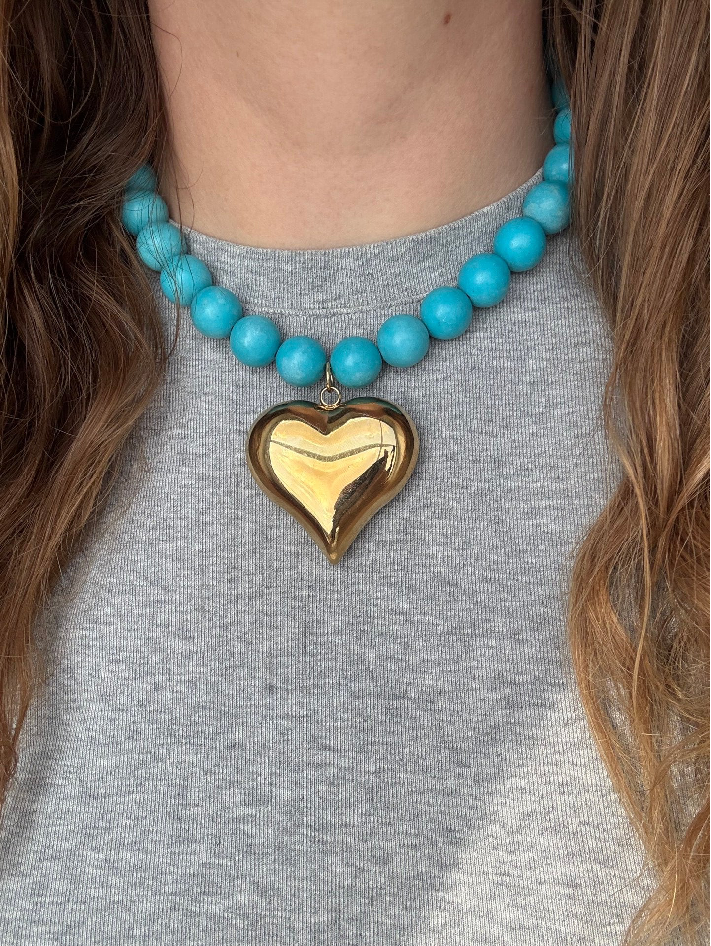 Alle materialen worden ingekocht, maar met liefde gemaakt door Sanne (founder). Deze opvallende ketting van blauwe jade kralen straalt rust uit, terwijl het gouden hart symbool staat voor zelfliefde en lef. Voor vrouwen die durven te stralen. Die zichzelf durven kiezen, elke dag opnieuw.